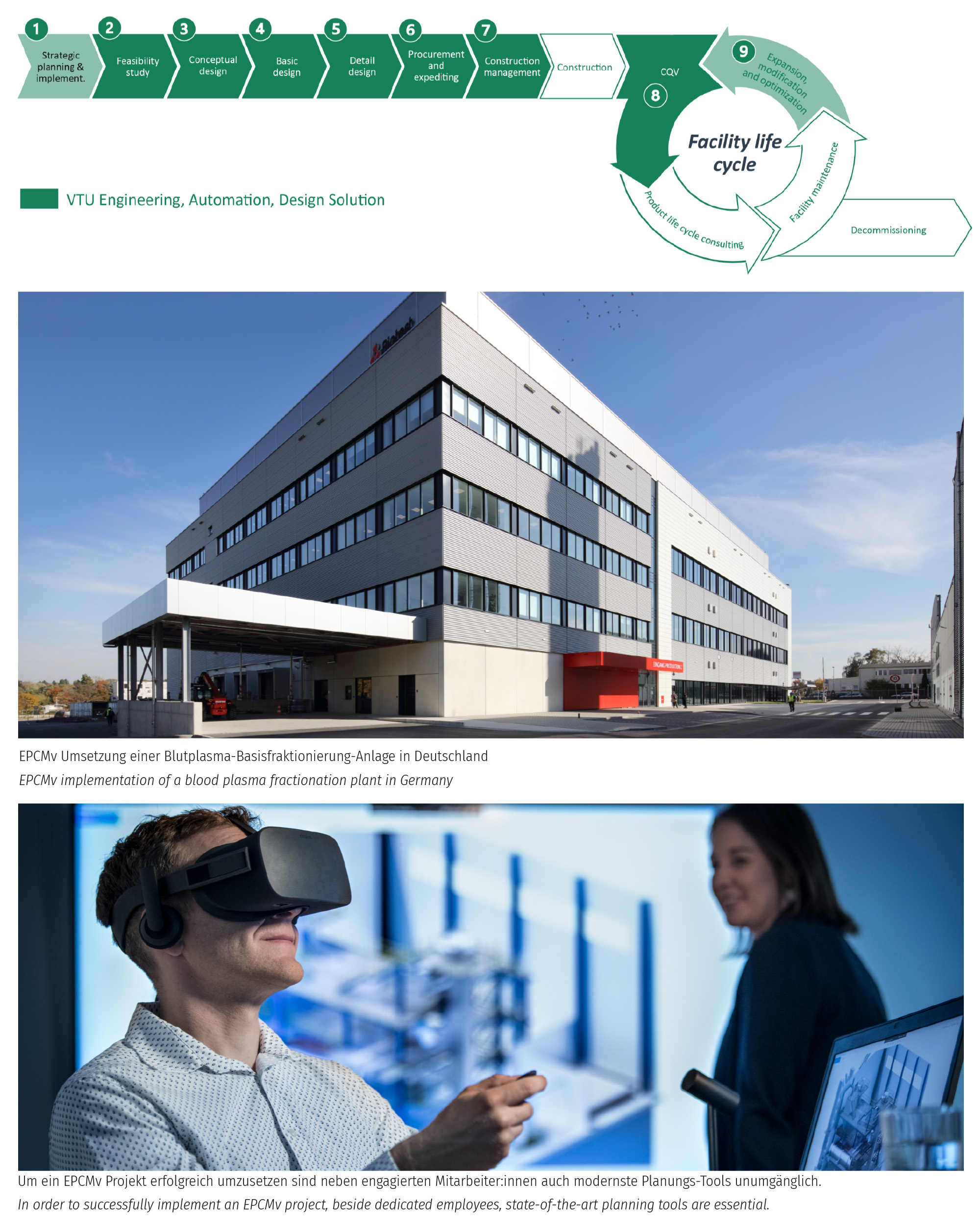 VTU Group is an international technology and engineering service provider. The company is specialized in the planning and implementation of highly efficient production plants. VTU’s holistic approach covers the entire life cycle of facilities, from strategic planning in the pre-project phase, through engineering, digitalization to the continuous development of all processes for efficient operation. Minimizing the ecological footprint is an integrated part of VTU‘s green engineering approach.